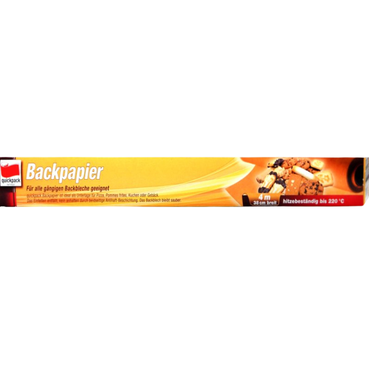 Quickpack Backpapier – 20 m is a high-quality, non-stick baking paper perfect for all types of baking trays. It prevents sticking, eliminates the need for greasing, and withstands temperatures up to 220°C. Ideal for cookies, cakes, and pastries — making baking clean, easy, and efficient.