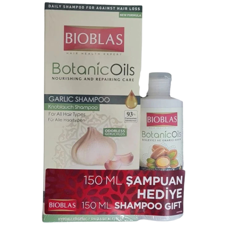 Give your hair complete nourishment and strength with Bioblas Garlic Shampoo, enriched with BotanicOils to reduce hair fall and support healthier hair growth. This special pack includes an additional 150 ml shampoo FREE, making it a great value choice for daily hair care.