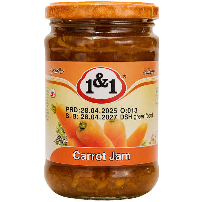1&1 Carrot Jam ( Marmalade Karotte 1&1) is a delicious, aromatic preserve made from tender shredded carrots cooked slowly to bring out their natural sweetness. With a soft texture and vibrant flavour, this jam is perfect for breakfast spreads, desserts, pastries, or as a unique topping for parathas, rotis, and toast. A traditional favourite, it offers a warm, homemade taste with every spoonful.