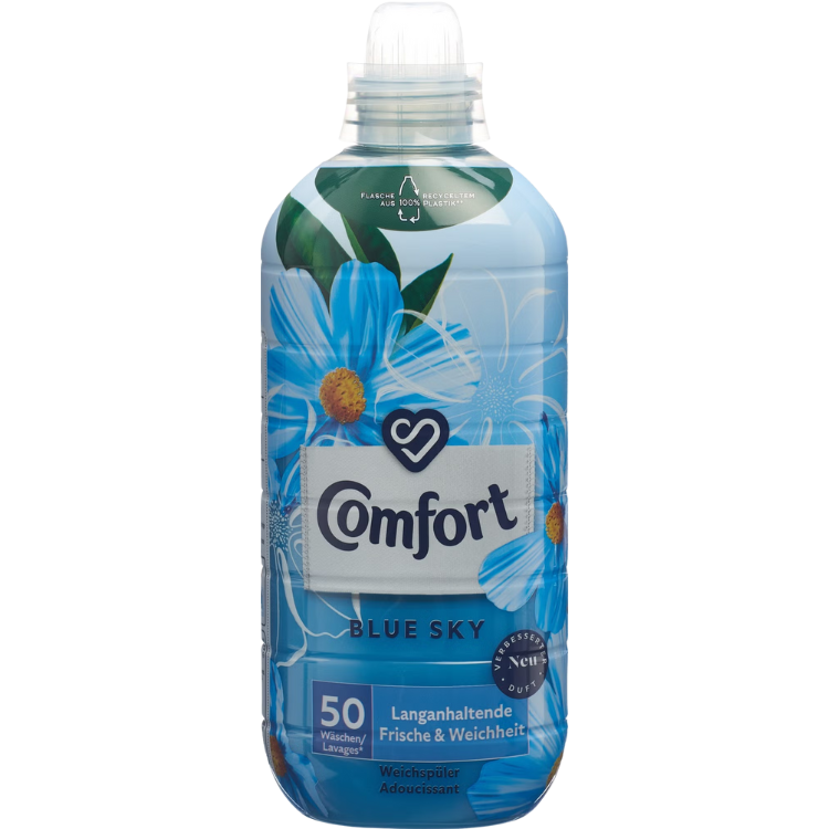 Comfort Blue Sky Pure delivers lasting freshness with skin-gentle care. Dermatologically tested and hypoallergenic, it keeps clothes soft, smooth, and comfortable to wear. Ideal for daily laundry, including babywear, bedding, and delicate fabrics. Provides up to 50 washes per bottle.