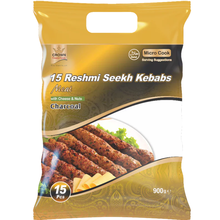 Crown Reshmi Seekh Kebab, is a delicate Mughlai chicken kebab which is utterly silky. Tender pieces of boneless chicken slathered in cream cheese and choicest spices are amalgamated together as reshmi kebabs.