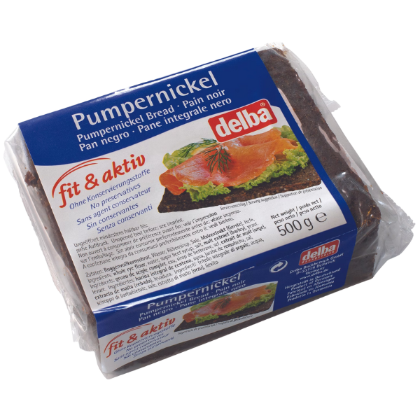 Traditional German pumpernickel bread made from whole rye, naturally baked for a rich, hearty flavor. Delba Fit & Aktiv Pumpernickel is high in fiber, free from preservatives, and packed with wholesome nutrition. Ideal for sandwiches, snacks, or as a healthy accompaniment to meals.