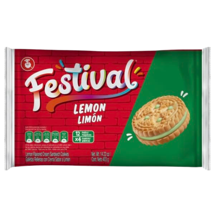 Enjoy the refreshing taste of Festival Lemon Biscuits, a crunchy and delicious treat with a burst of zesty lemon flavor. Perfectly baked for a light and crisp texture, these biscuits are ideal for tea-time, school tiffins, or as a quick snack anytime you crave something tangy and sweet. Loved by kids and adults alike, Festival Lemon Biscuits bring a citrusy twist to your everyday snacking. The other name for Festival Lemon Biscuit - 403g is Noel Festival Limón or Festival Lemon Cookies