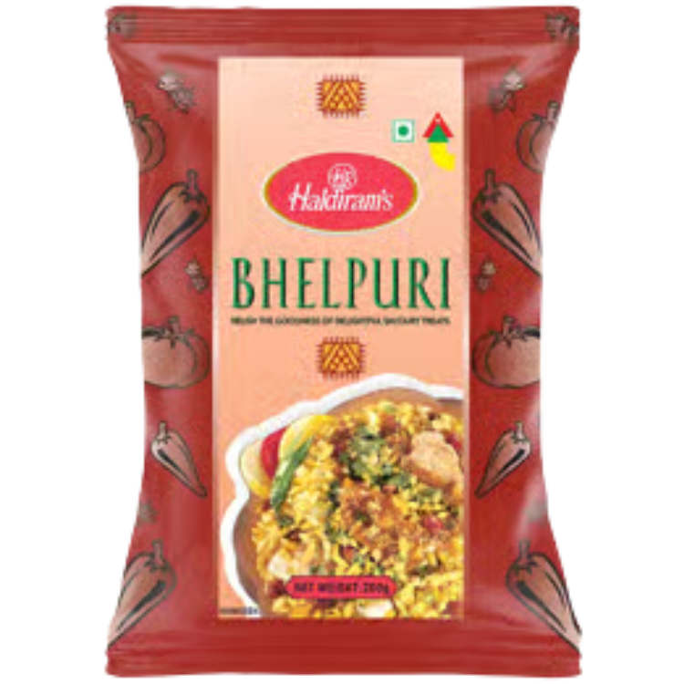 A generous mix of crispy sev, bhel, and potato bits, Haldiram's Bhel Puri is a lip-smacking take on India's beloved street food. Perfect on its own or whipped up with some chopped fresh onions and tomatoes, the authentic Mumbai style. Now savour the taste of your favourite Indian snack anytime with Haldiram's Bhelpuri, a crunchy snack packed with a taste of delectable chutneys. Share with your friends and family and have a great time.