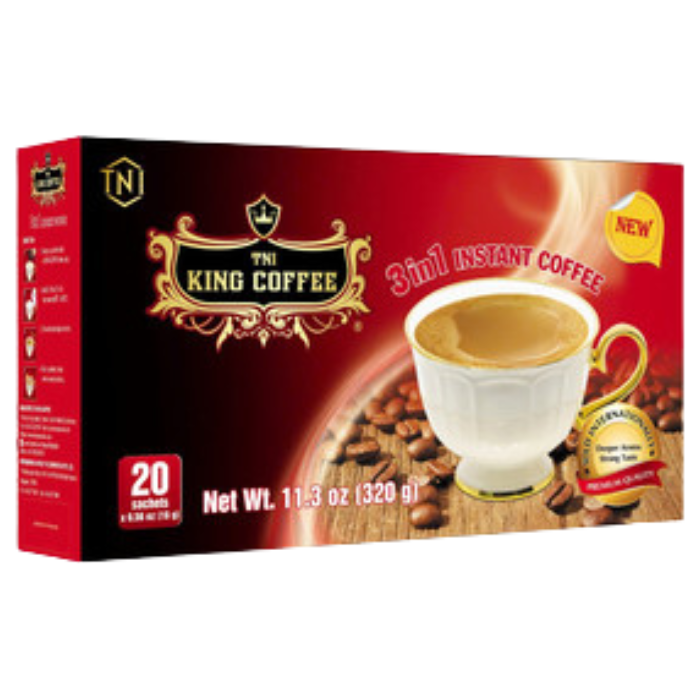 Indulge in the smooth, creamy taste of King Coffee 3-in-1 Instant Coffee — Vietnam’s famous instant blend. Each sachet combines premium roasted coffee, non-dairy creamer, and sugar to create a perfectly balanced cup within seconds. Simply add hot water and enjoy a rich, aromatic coffee anytime, anywhere.