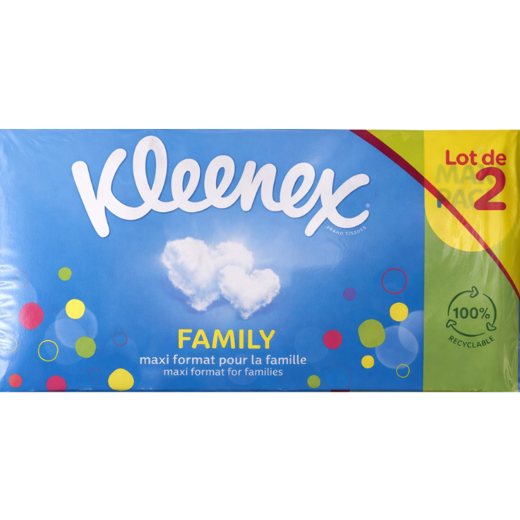 Kleenex Family Tissues are soft, strong, and gentle for everyday use. Perfect for the whole family, this maxi pack offers lasting comfort for home, office, or on-the-go needs. Each box is made from 100% recyclable material — caring for you and the planet.