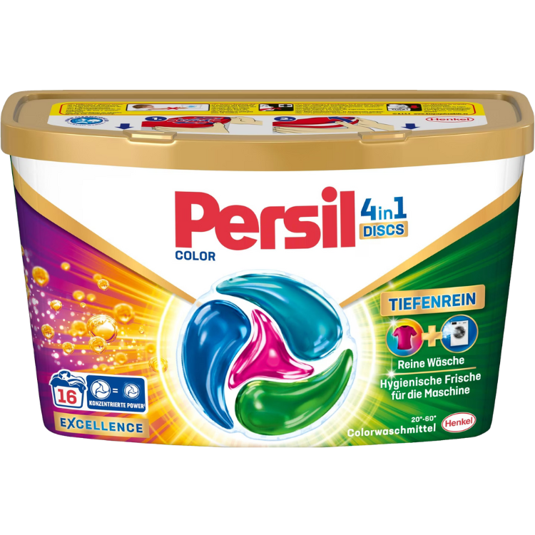 Experience powerful and convenient laundry care with Persil 4-in-1 Color Discs. Each disc delivers four actions in one wash—deep cleaning, bright color care, long-lasting freshness, and effective stain removal. Ideal for everyday laundry, these pre-measured discs dissolve quickly, ensuring no residue and perfect dosing every time.